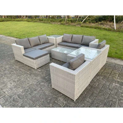 Light Grey Outdoor pe Rattan Garden Furniture Set Wicker Sofa Rectanguar Coffee Table 2 Armchair Side 9 Seat Fimous