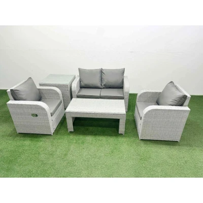Light Grey pe Wicker Rattan Garden Furniture Set Sofa Reclining Adjustable Chair Oblong Coffee Table 4 Seater With Side Fimous