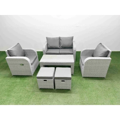 Light Grey pe Wicker Rattan Garden Furniture Set Sofa Reclining Adjustable Chair Oblong Coffee Table 6 Seater 2 Small Stools Fimous