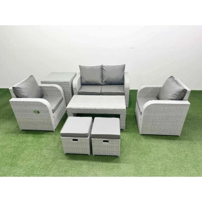 Light Grey pe Wicker Rattan Garden Furniture Set Sofa Reclining Adjustable Chair Oblong Coffee Table 6 Seater 2 Small Stools Side Fimous