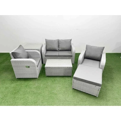 Light Grey pe Wicker Rattan Garden Furniture Set Sofa Reclining Adjustable Chair Rectangular Coffee Table 5 Seater With Footstool Side