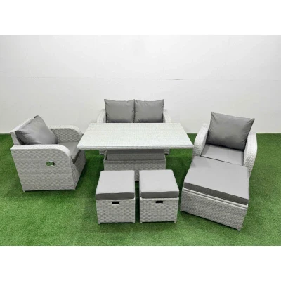 Light Grey pe Wicker Rattan Garden Furniture Set Sofa Reclining Chair Adjustable Lifting Dining or Coffee Table 7 Seater 3 Stools Fimous