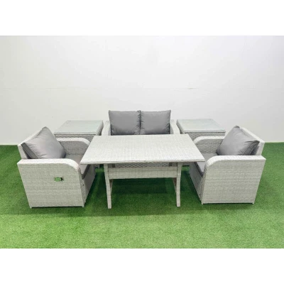 Light Grey pe Wicker Rattan Garden Furniture Set Sofa Reclining Chair Rectangular Dining Table 4 Seater With 2 Side Fimous