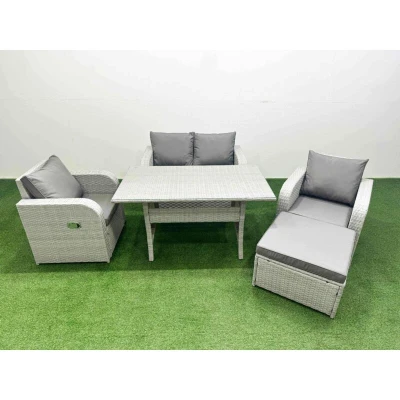 Light Grey pe Wicker Rattan Garden Furniture Set Sofa Reclining Chair Rectangular Dining Table 5 Seater With Footstool Fimous