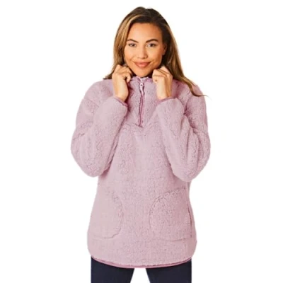 Light & Shade Ladies Borg Supersoft Pullover Lounge Bed Jacket Snuggle Top, Pink, S/M