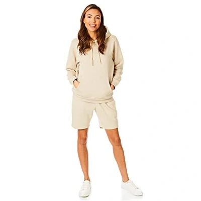 Light & Shade Women's Pastel Brights Loungewear Sweat Shorts Joggers Jogging Shorts, Sand, Large