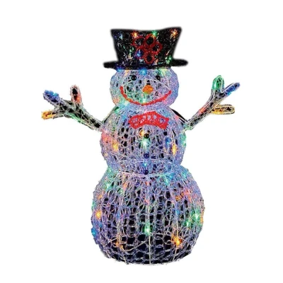 LIGHT UP 76cm ACRYLIC Christmas SNOWMAN Decoration with 88 MULTI COLOUR LED Lights