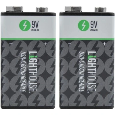 Lighthouse 9V USB C Rechargeable Li ion Battery Pack of 2