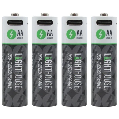 Lighthouse Aa USB C Rechargeable Li ion Battery Pack of 4