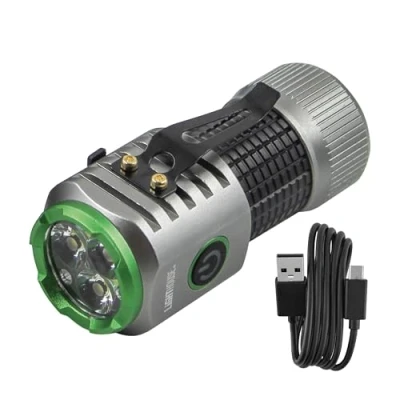 ManoManoGeneral description The Lighthouse Mini Torch provides powerful illumination in the palm of your hand. Designed for outdoor adventures, emergency situations, or everyday tasks around the home, this torch combines portability with performance. With an impressive output of 1000 lumens, it delivers a remarkable beam distance of up to 110 metres. Weighing just 100 grams, it easily fits in your pocket or clips onto your bag, making it incredibly convenient for on-the-go use. The torch features four versatile light modes: 25%, 50%, 100%, and the high-intensity TURBO mode, allowing you to adjust the brightness to your needs. Powered by a robust 700mAh Li-ion battery, it offers an impressive run time of up to 10.5 hours on a single charge, ensuring you have reliable light whenever you need it. Designed for durability, the aluminium alloy body is built to withstand the rigours of everyday use while providing resistance to knocks and drops. Plus, the handy charge indicator keeps you informed of