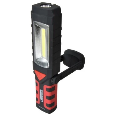 The Lighthouse COB LED Swivel Base Torch provides users with a multitude of features and benefits. Whether you use a torch at work, for a trade application, or at home, for leisure and hobby activities, this will be a useful addition to your tool kit. It has the latest technology COB (Chip on Board) LED work light panel on the side of the body, and also a traditional spotlight torch at the end, along with a red flashing hazard light on the back of the body. This enables you to use it in a number of ways to suit the task or environment you are working in. The work light delivers an outstanding 220 lumens of light, and the spotlight torch an impressive 120 lumens, making this an extremely versatile and useful light. It takes 3 x AAA batteries (supplied) and has an impressive run time of between 6 to 8 hours. Ideal to have in a glove box, toolbox, kitchen drawer and can be used anywhere, whether it be camping, fishing, working in the garage, loft, plumbing a bath or working on machinery