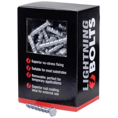 General description Forgefix Countersunk Torx® Compatible Head Lightning Bolts provide a virtually stress-free fixing for close-to-edge applications. These self-threading bolts allow for quick and easy installation in most masonry fixing applications, as they can be screwed directly into a pre-drilled hole without the need for a sleeve or plug. The through-fixing design eliminates the need for marking and repositioning, while the high load capacity is achieved through the thread interlocking into the base material. The Torx® compatible head offers increased control and is countersunk to sit flush with the surface of the material. Technical specifications Size: M6 x 150mm Pack quantity: 100 MPN: LGB6150T EAN: 5028485101536 Coating: 'Elementech' for superior anti-corrosion, salt spray tested to 1,000 hours Usage These bolts are widely used for fixing battens, balustrades, handrails, racking, and securing machinery, among many other installation applications. They are suitable for most