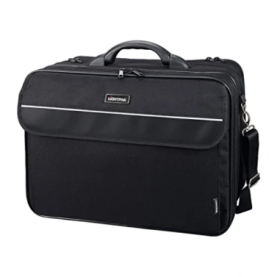 The Lightpak Fixbag Corniche bag made of black polyester is equipped as a universal bicycle bag with a Klickfix compact rail so that it can be easily attached to a bike The business bag is equipped with a trolley strap on the back for a secure hold on rolling suitcases. Features: zip pocket in the back and zip front pocket with organiser compartment Interior: padded laptop compartment for 17 inch notebooks with removable inner divider and A4 slip pocket, overnight compartment with elastic packing strap and an additional zip compartment for documents The shoulder bag has a removable shoulder strap and a carry handle. Thanks to the Klickfix bracket, it is easy to store on the pannier rack of the bicycle; load capacity 7 kg, including rain cover Shoulder bag outer dimensions: approx. 33.5 x 43 x 22 cm, inner dimensions of laptop compartment: approx. 32 x 41 x 5.5 cm, material: polyester, colour: black, item number: FB2046075, EAN: 4021068021192