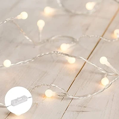 COSY, SOFT GLOW: Add a warm ambiance to your space with our 40 Warm White LED Berry Lights, perfect for creating a magical, inviting atmosphere. VERSATILE DECORATING OPTIONS: Ideal for bedroom headboards, mirrors, or even as beautiful wedding décor, these lights bring elegance and charm to any setting. DISCREET, FLEXIBLE PLACEMENT: Featuring a clear 3.1m cable and a 1m lead from the plug to the first light, they offer flexibility for easy placement, even when outlets aren’t nearby. Use the handy flicker switch to operate the lights! SAFE & COOL TO TOUCH: Equipped with a low-voltage transformer, these lights are safe for indoor use and stay cool, allowing you to display them around fabrics and furnishings with ease. QUALITY GUARANTEED: Backed by a 12-month product guarantee from Lights4fun, you can trust in the durability and quality of these lights for your home or special event decor.