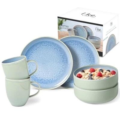 Handcrafted look and rustic charm: The Crafted collection impresses with its natural shades that in turn inspire creative mixing and matching Rustic charm with a personal touch: The special reactive glaze creates unique and authentic pieces, therefore promoting individuality and creativity Perfectly equipped to start the day: Set consisting of 2x breakfast plates (21 cm), 2x bowls (16 cm), 2x mugs (330 ml) Premium quality: Premium porcelain, dishwasher-safe and microwave-safe Delivery contents: 1x like. by Villeroy & Boch Group, Crafted Blueberry, 6-piece breakfast set, material: premium porcelain, colour: turquoise (item no. 19-5169-9071)