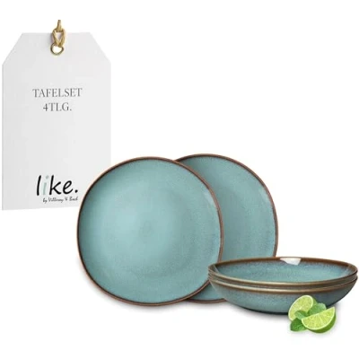 like. by Villeroy & Boch Lave earthenware tableware set, 4 pces., pottery look, dinnerware for 2 people, turquoise