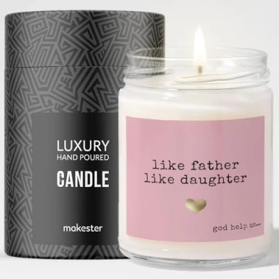 Like Father Daughter Gift Luxury Soy Wax Candle Vanilla, Jasmine, Sugared Almond Makester