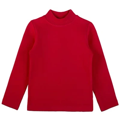 Lilax Girls' Basic Long Sleeve Mock Turtleneck Cotton T Shirt 5 Red