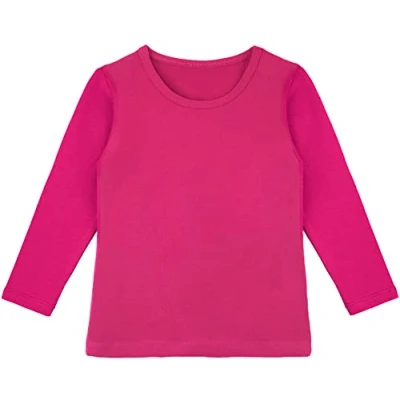 Lilax Girls' Basic Long Sleeve Round Neck Cotton T Shirt 11 Hot Pink