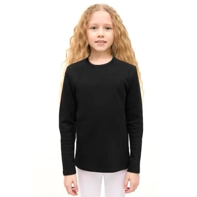Lilax Girls' Basic Long Sleeve Round Neck Cotton T Shirt 9 Black