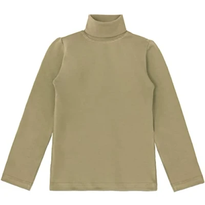 Lilax Girls' Basic Long Sleeve Turtleneck Cotton T Shirt 11 Olive Green