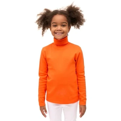 Lilax Girls' Basic Long Sleeve Turtleneck Cotton T Shirt 6 Orange