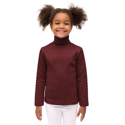 Lilax Girls' Basic Long Sleeve Turtleneck Cotton T Shirt 9 Burgundy