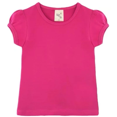 Lilax Girls' Basic Short Puff Sleeve Round Neck Cotton T Shirt (4T, Hot Pink)