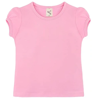 Lilax Girls' Basic Short Puff Sleeve Round Neck Cotton T Shirt (4T, Sugar Pink)