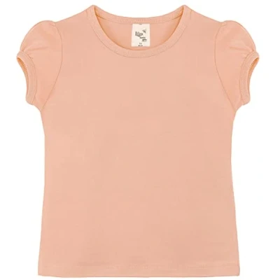 Lilax Girls' Basic Short Puff Sleeve Round Neck Cotton T Shirt (5T, Peach)