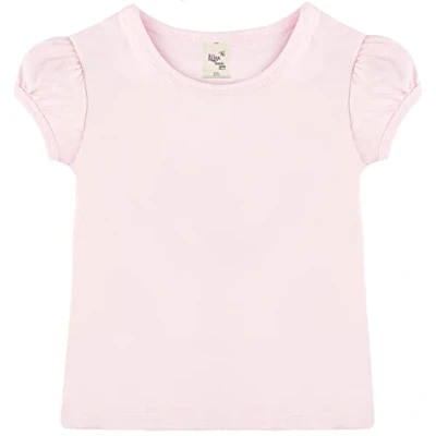 Lilax Girls' Basic Short Puff Sleeve Round Neck Cotton T Shirt (5T, Pink)