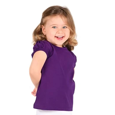 Lilax Girls' Basic Short Puff Sleeve Round Neck Cotton T Shirt (5T, Purple)