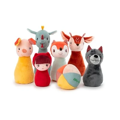 LILLIPUTIENS Baby Fabric Bowling Set 6 Funny Pins and a Sound Ball Kids' Ideal for Developing Toddlers' Motor Skills From 18 Months 83465