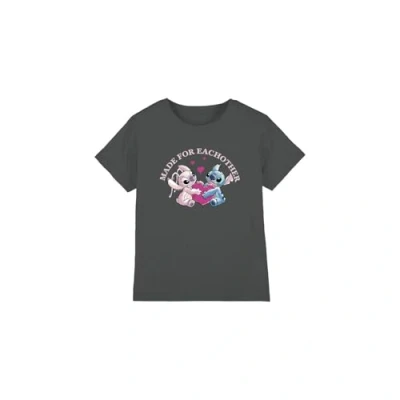 Lilo and Stitch Boys & Made for Each Other Unisex Kids T Shirt, Charcoal, 3 4 Years UK