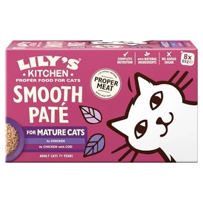 When you're a feline of a certain age (7), variety is the spice of life; hence why we created our precious companions a multipack selection of senior cat food patés; approved by our vet and nutritionist, each delicious grain-free recipe is specially tailored for older felines with the support they need to help fuel their everyday kitty mischief Revamped for an even tastier experience (cats, you can thank us later), our patés feature a smooth, velvety texture made with quality, natural ingredients, including proper meat, offal and/or fish For more Lily's Kitchen cat food, discover more recipes made with natural ingredients, including options for all lifestages Here at Lily's Kitchen, we make proper dog food and cat food made with natural ingredients and freshly prepared meat and offal; only the best for your furry family