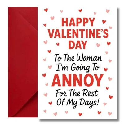 💘 FUNNY VALENTINES CARD FOR HER – This cheeky valentines card is perfect for showing love with humour. Ideal if your relationship is built on laughs, teasing, and honesty, it’s a great choice for anyone looking for valentines day cards funny enough to stand out. A playful way to say Happy Valentine’s Day while making her laugh and feel loved at the same time 😆❤️ 😂 PLAYFUL & RUDE IN A LOVING WAY – A funny valentines card for her that says what you’re both thinking. Great as a rude valentines card without crossing the line, it’s ideal for girlfriends, wives, or partners who enjoy sarcasm. Perfect if you’re shopping for funny valentine cards, valentines card rude for her, or a humorous valentines card she’ll actually keep 🤭💌 💕 PERFECT FOR WIFE, GIRLFRIEND OR PARTNER – Whether you need a wife valentines day card, partner valentines card for her, or a valentines card for her funny enough to match your relationship, this design fits the bill. It works brilliantly as a valentine card for wife, girlfriend, or fiancée who loves jokes, banter, and a bit of cheekiness 💑✨ ✍️ A5 CARD WITH BLANK INSIDE – This valentines card is A5 when folded, giving plenty of space inside for your own message. Add something sweet, sarcastic, or sentimental to make it personal. Comes with a coloured envelope, so it’s ready to gift or post straight away. A quality valentines card that feels special, not flimsy 📬💖 🎁 MEMORABLE ALTERNATIVE TO BORING CARDS – If you’re bored of generic valentine cards, this funny valentines card is a great alternative. Ideal for anyone searching for valentines cards funny, valentine card funny, or a unique happy valentines day card. A fun keepsake she’ll smile at long after Valentine’s Day is over 😍🎉