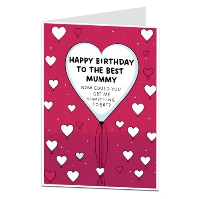 SUPER HIGH QUALITY β Printed on thick 300gsm cardstock, this birthday card for mummy feels premium and special. A5 when folded, itβs blank inside, offering plenty of space for little ones to add their own message. Comes with a colourful envelope for a perfect presentation! ππ ADORABLE & FUNNY MESSAGE β With the playful words, βHappy Birthday To The Best Mummy. Now Could You Get Me Something To Eat?β, this happy birthday mummy card brings smiles and warmth to her special day! ππ PERFECT FROM KIDS β Designed as a mummy birthday card from kids, this card captures the sweet, humorous side of children and their endless love for mum, making it a memorable choice from any son or daughter. πΆβ€οΈ GREAT FOR ANY AGE β Whether itβs a mummy day card from son or daughter, this card is a wonderful pick for kids of all ages who want to make mum feel extra special with a touch of laughter. ππ©βπ§βπ¦ BLANK INSIDE FOR PERSONAL TOUCH β The blank interior offers space for little hands to write, draw, or add a loving message. Ideal for creating a unique mummy birthday card sheβll treasure for years! ππ