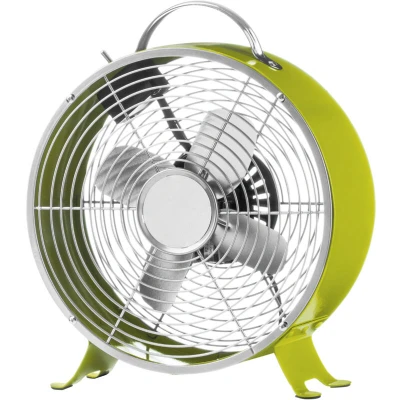 General description Keeping your cool on those hot summer days, our stylish and vibrant retro desk fan will bring a gentle breeze into your bedroom or living space with the flick of a switch. Made using durable and robust metal, the housing and legs are given a vivid lime green finish that will add color and style to your room. The legs feature rubber non-slip feet ensuring the fan is always stable and steady. Two speed options of low and high allow you to choose a gentle or healthy breeze. A handle on top makes it easy to maneuver the fan into a position that will best suit your needs. The everyday retro desk fan will create that sought-after breeze on hot, stuffy days.