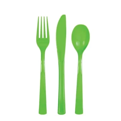 Lime Green Solid Assorted Plastic Cutlery Classy & Elegant Flatware Design Perfect for Parties, Weddings Events 18ct