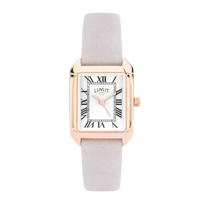 Limit ladies watch with a refined 32 x 22 mm square alloy case finished in warm rose-gold plating and protective mineral dome glass – perfect for work or weekend wear Crisp silver dial with vertical brushed effect, bold black Roman numerals and inner minute track for a timeless easy-to-read design Rose-gold hour minute and second hands add a subtle contrast and classic detailing to the silver dial Wrapped grey PU padded strap with tapered end and rose-gold plated buckle provides a secure, comfortable fit and a modern colour twist Accurate quartz analogue movement powered by SR626SW battery lightweight at 22g and backed by Limit’s official 2-year manufacturer’s guarantee – an affordable yet stylish gift
