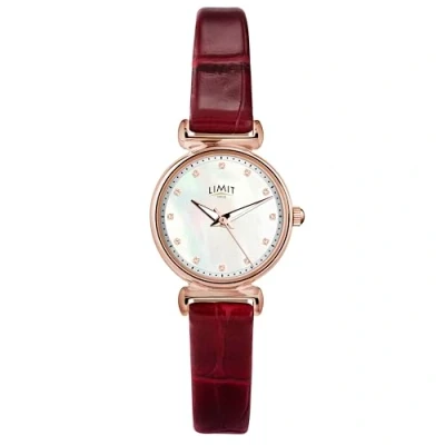Limit Ladies Analogue Dress watch Mother of Pearl Effect dial Stone set Hour Markers Red Faux Leather strap