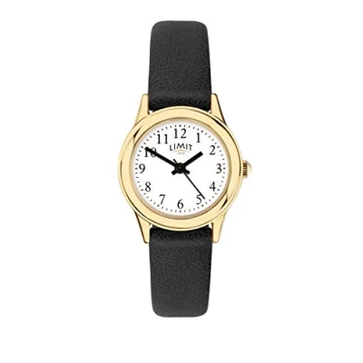 Limit Ladies Quartz watch White Dial Gold Plated case Black strap