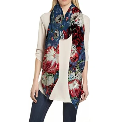 Lina & Lily Floral Women's Large Scarf Shawl Wrap Lightweight (Navy Blue Pattern A)(Size: One Size)