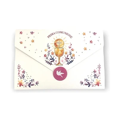 LINA OFFICINE GRAFICHE CREATIVE 96 561 Communion Card Girl Money Holder with Label Close Envelope, 11 x 16 cm (Girl Liturgical Chalice)
