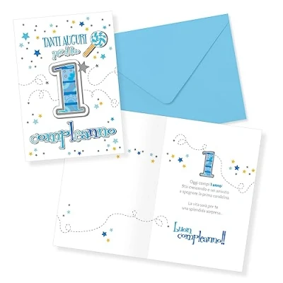 LINA OFFICINE GRAFICHE CREATIVE Baby Boy 1 Year Birthday Card Sky Blue 30 001
