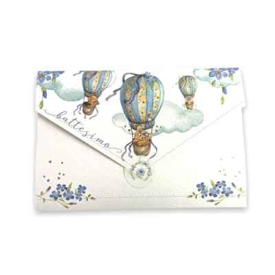 LINA OFFICINE GRAFICHE CREATIVE Baptism Card for Godmother and Godfather Christening Gift with Money Bag Included Label Close Envelope, 11 x 16 cm (Balloon, Light Blue) 96 403