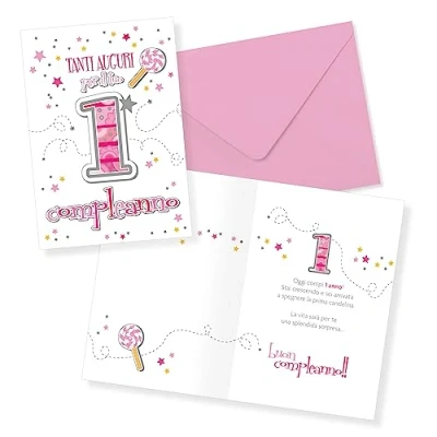 LINA OFFICINE GRAFICHE CREATIVE Birthday Card 1 Year Pink Girl 30 002