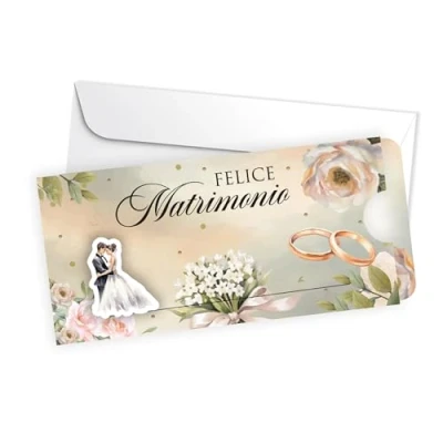 ELEGANT DESIGN: Wedding card with floral decorations, gold wedding rings and white flower bouquet on gradient background, perfect for celebrating wedding INNOVATIVE FORMAT: Sliding card with dedicated space to write your personal message of greetings to the bride and groom COMPLETE SET: Includes matching white envelope and Happy Wedding card in elegant calligraphy PRACTICAL SIZE: Measures 22 x 10.5 cm, ideal size to hold your greeting message ITALIAN QUALITY: Made with high quality paper and professional printing for a refined and elegant result