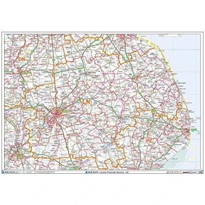 A High Quality Postcode Sector Wall Map. Showing the Entire LN Postcode Area, with Precise Boundaries and Clear Postcode Labels on a Detailed Map Background. A0 Size - 1189mm x 841mm Art quality 120 gsm paper