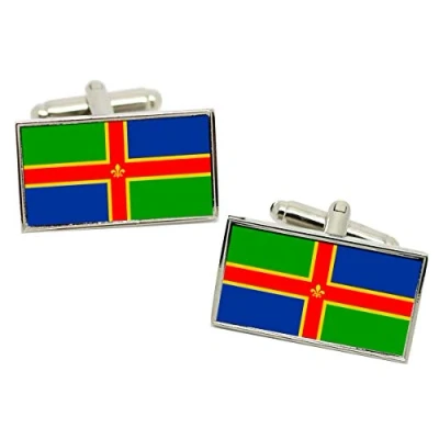 Flag Shaped Cufflinks 23x13mm rectangle Full Colour resin dome image Swivel back cufflinks Complete in chrome gift box